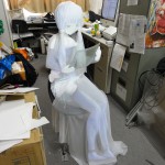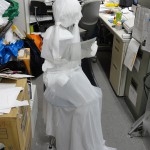 日本大学芸術学部の青木准教授が考案した以下の写真のように人形のスクリーンに結月ゆかりのイラスト映像を投射し、VOICEROIDとCrazyTalkを用いて喋らせる技術です。